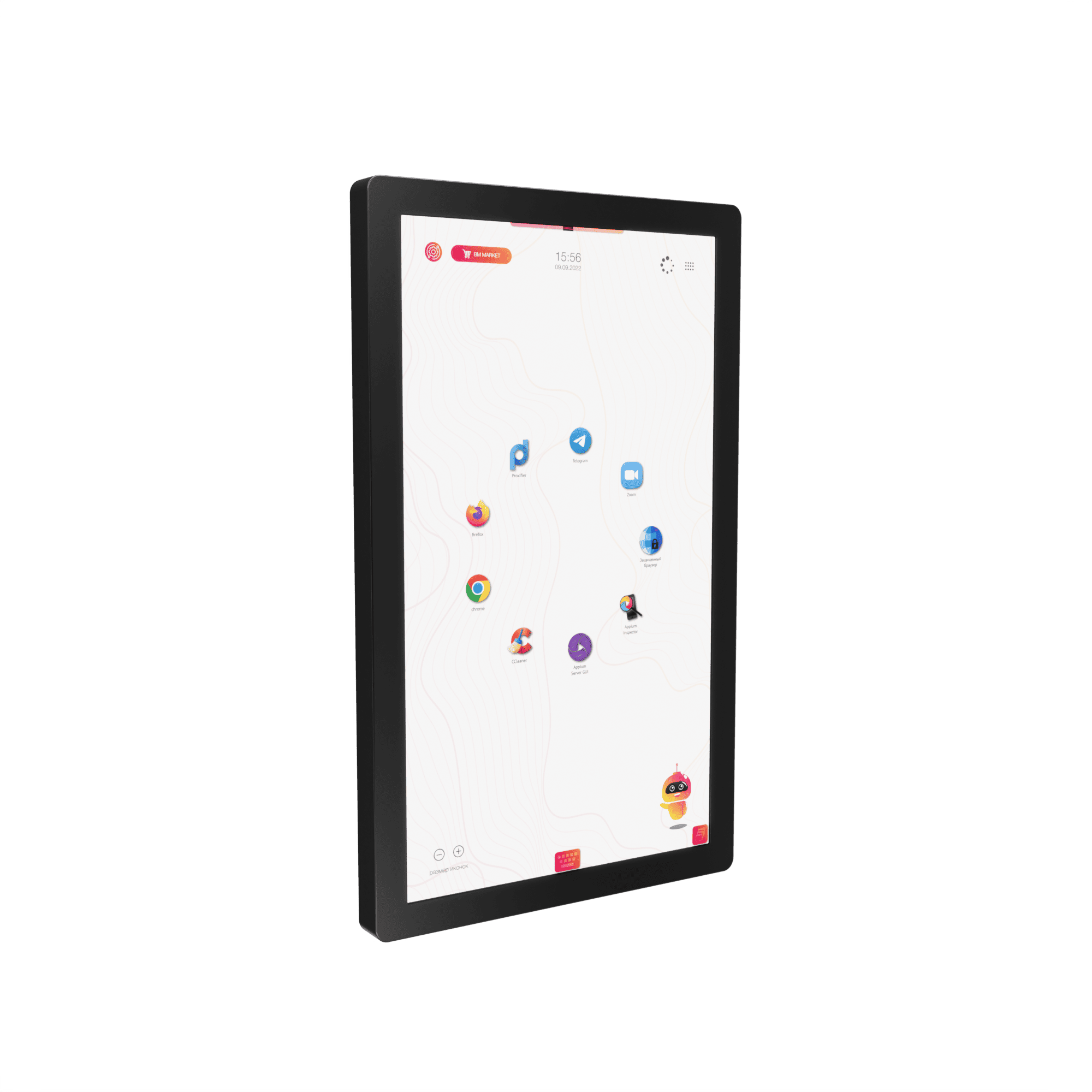 - Прочная и безопасная конструкция для интенсивного использования — корпус выполнен из долговечных материалов, экран защищен прочным стеклом. Панель предназначена для настенного крепления или установки на мобильную стойку, что обеспечивает ее устойчивость и безопасность в условиях активной эксплуатации в учебных заведениях и офисах.