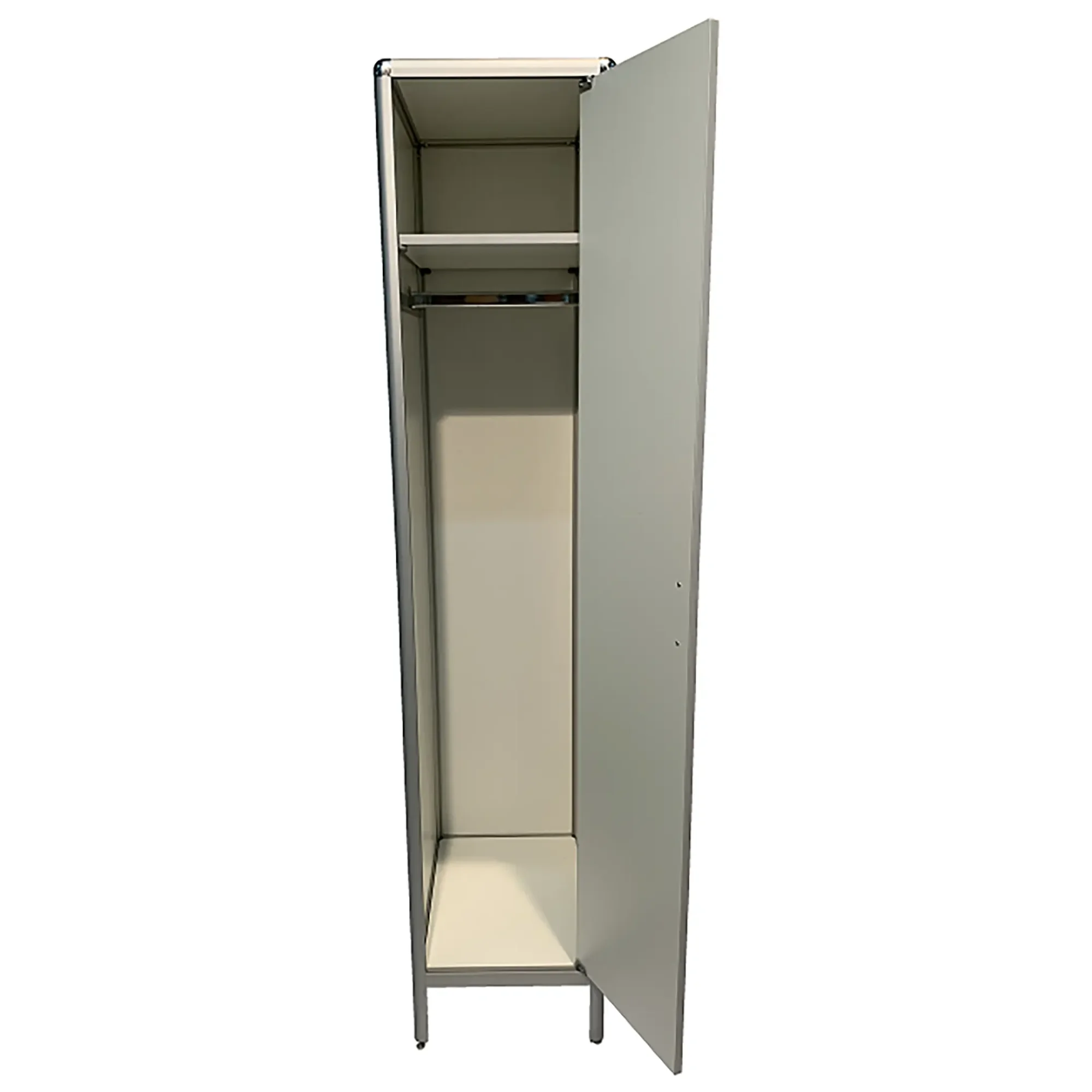 • Оснащен штангой, полкой для головных уборов, дверцей и регулируемыми по высоте ножками.