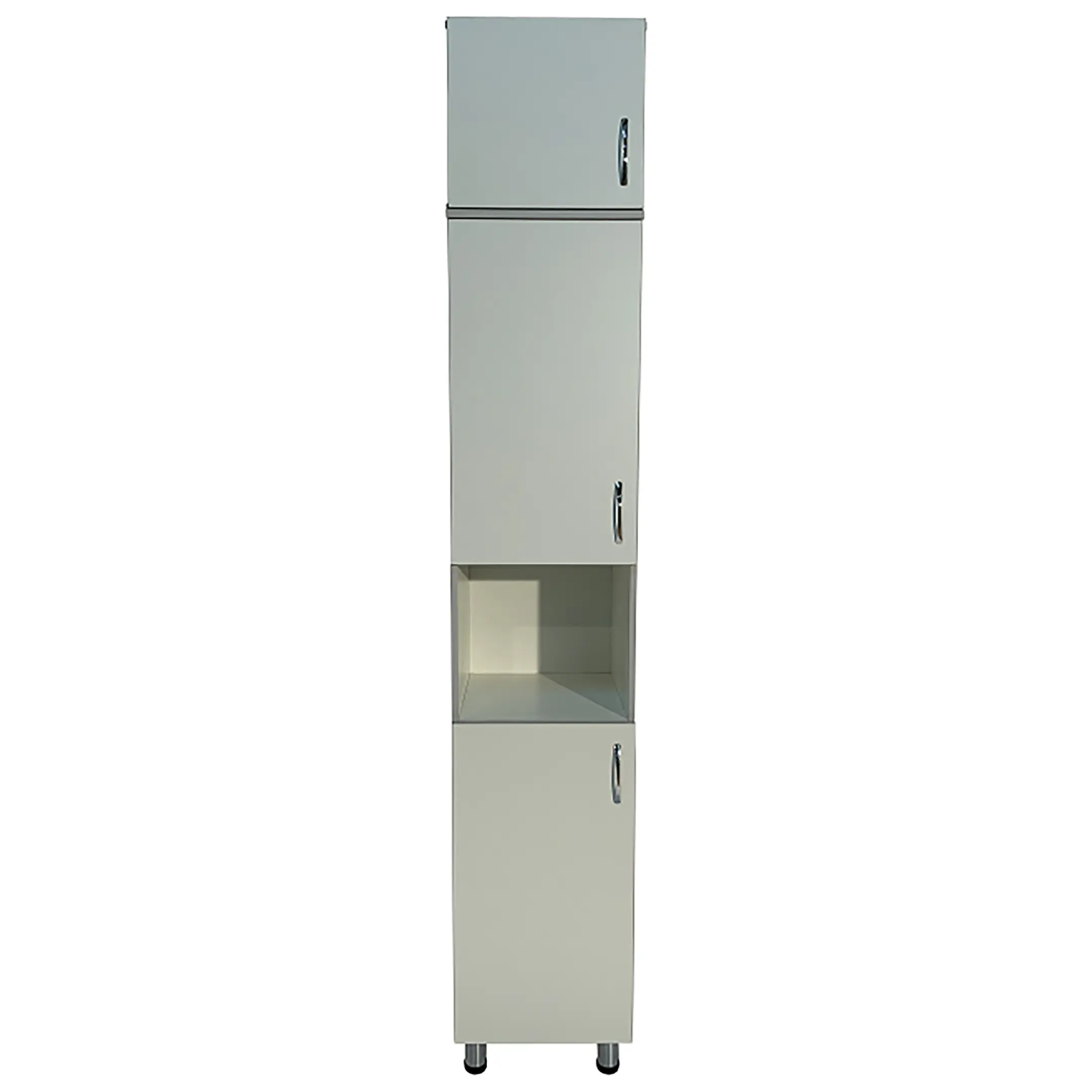 • Ниша шкафа разделена на отделения, что помогает эффективно организовать хранение и быстро находить необходимые материалы.
