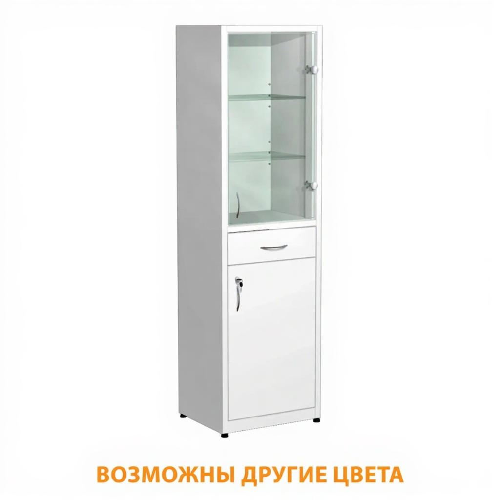 Шкаф металлический для медикаментов (стекло), с ящиком ШдМп-3.1 (белый) активно используются в больницах, лабораториях, аптеках, где необходимо хранение медикаментов, медицинского инвентаря, одежды работников, приборов, больничной документации.