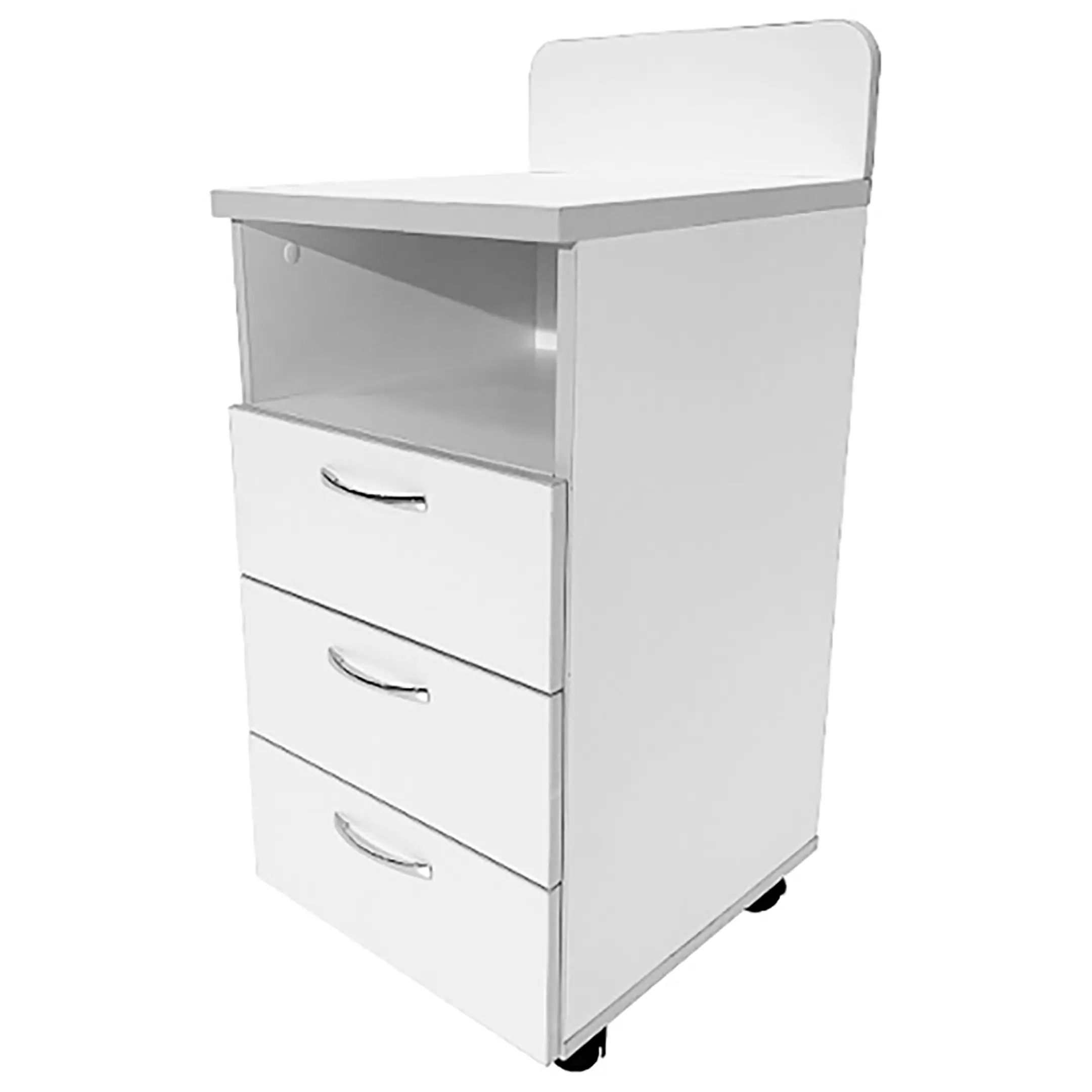- Удобная высота и маневренность: Расстояние от пола до верхней кромки рабочей плоскости составляет 720 мм, что оптимально для работы с физиотерапевтическим оборудованием. Тумба установлена на четыре колеса диаметром 50 мм, два из которых оборудованы стопорами для надёжной фиксации на месте.