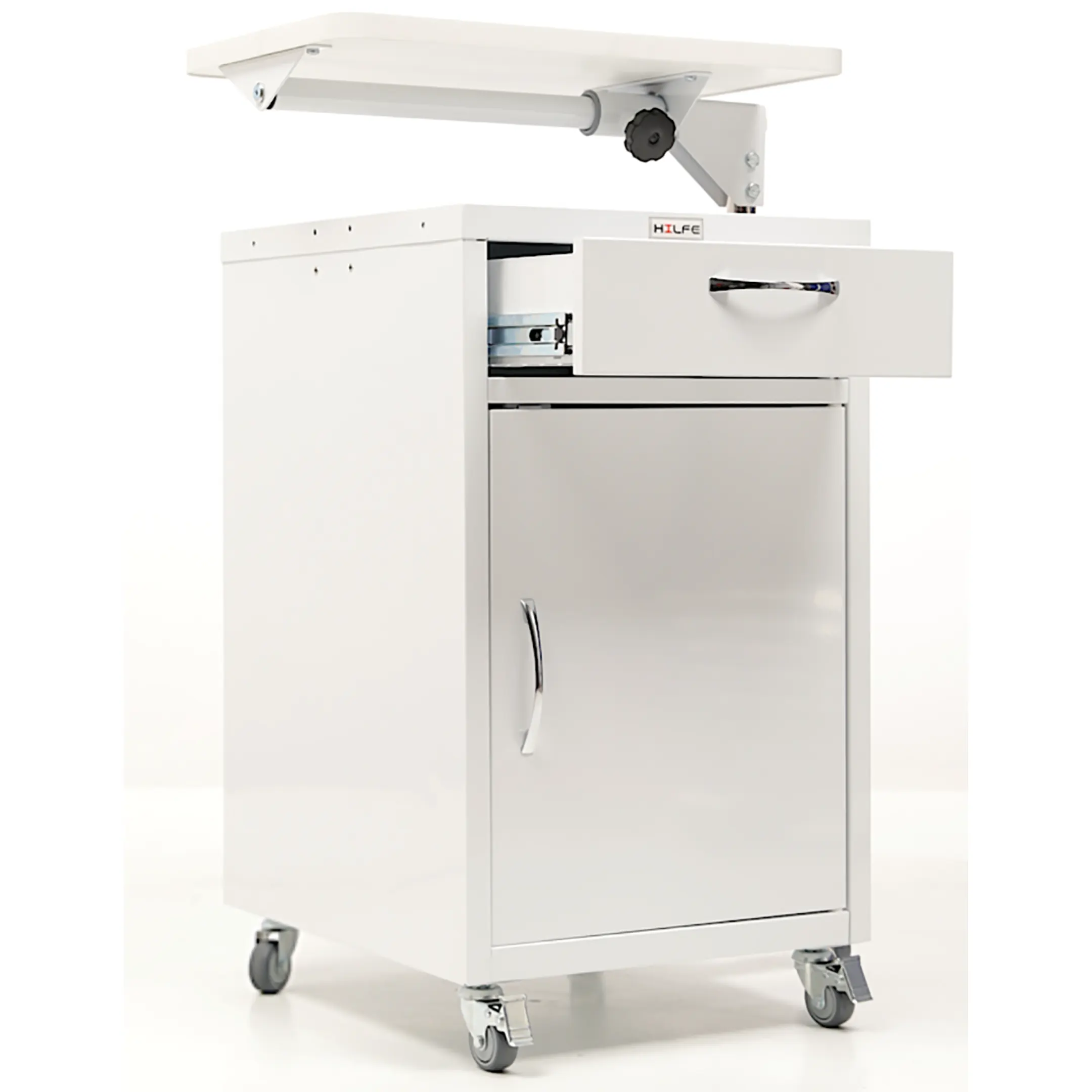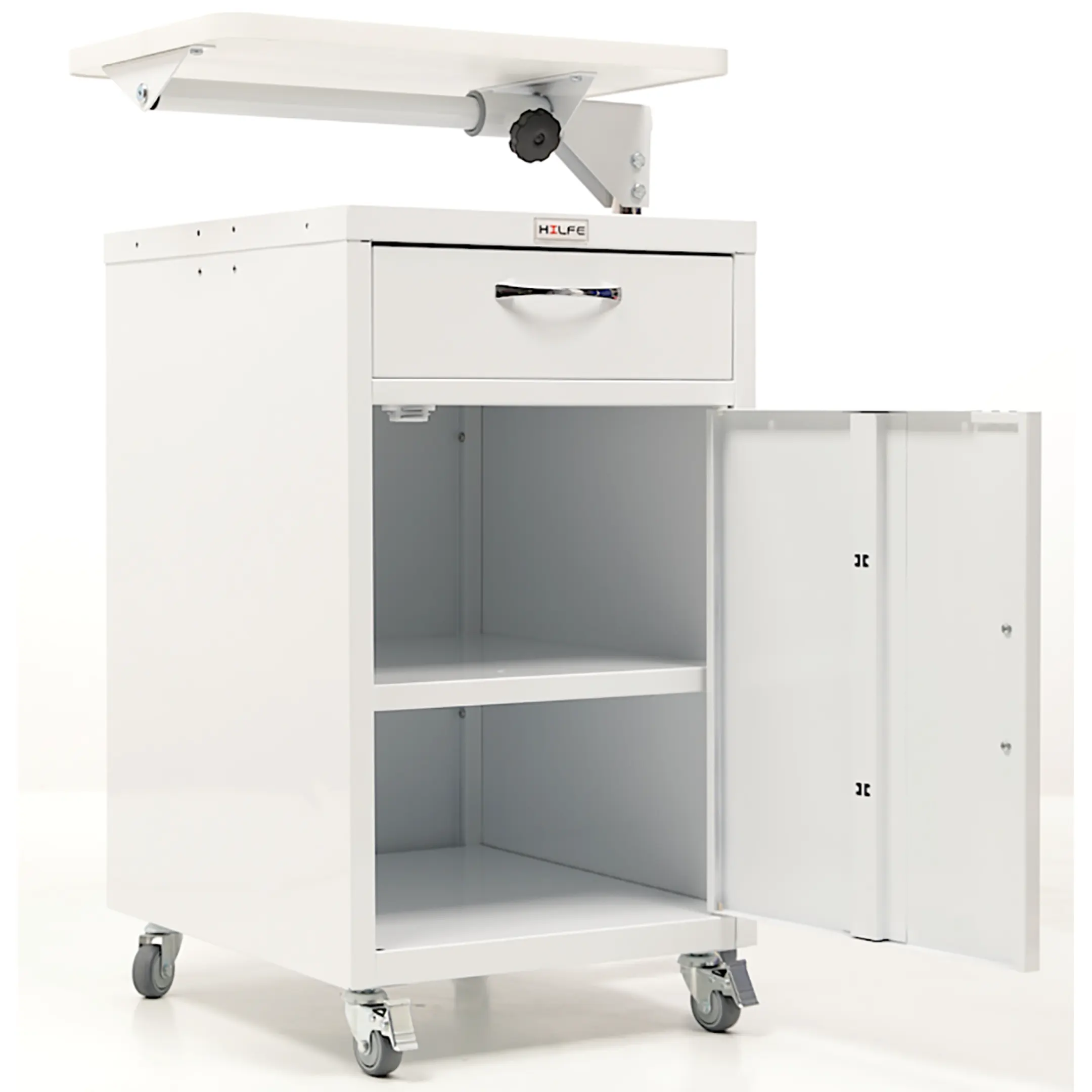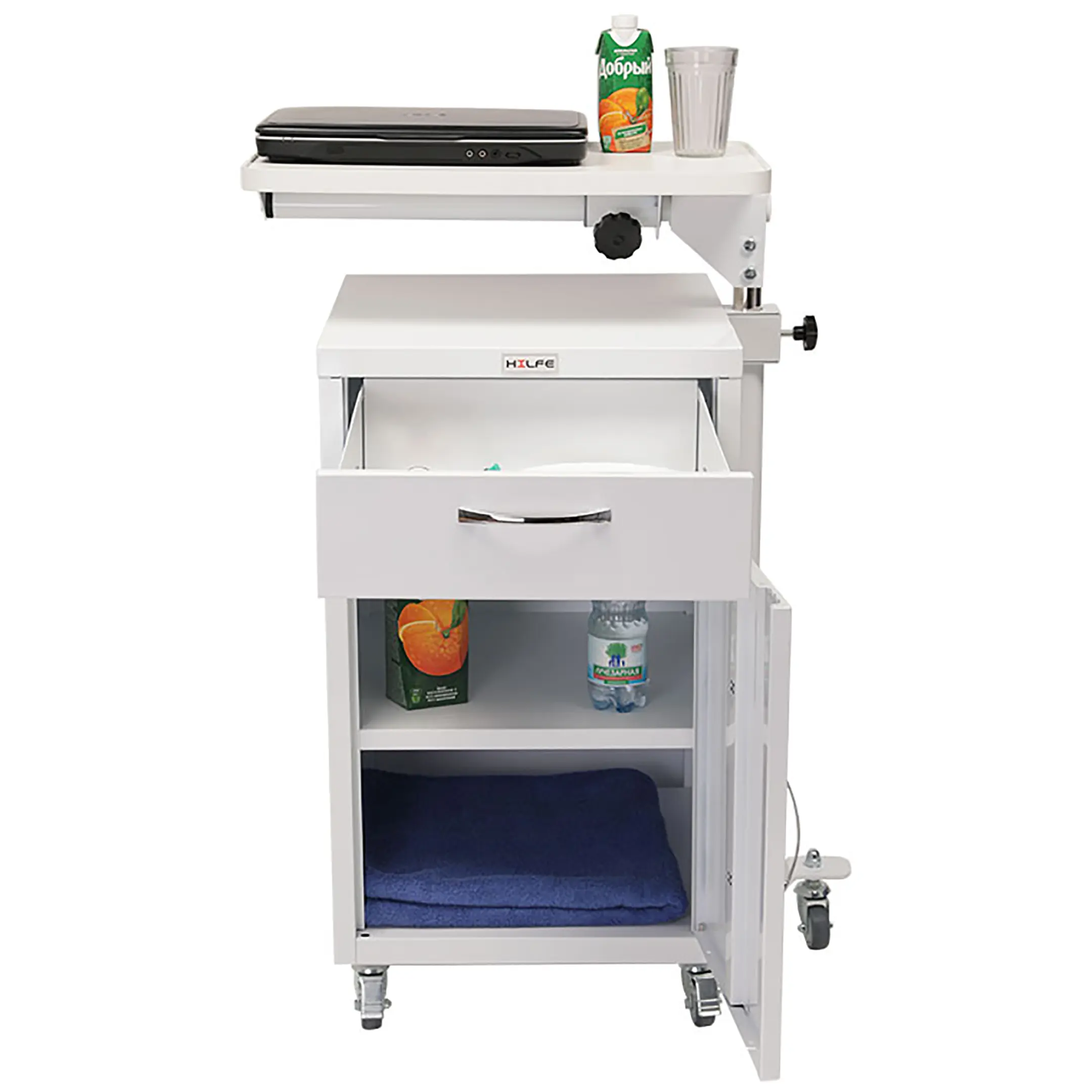 Тумба медицинская МД ТП-9 предназначена для хранения личных вещей пациентов, медикаментов в больничной палате или домашних условиях. Тумба комплектуется прикроватным поворотным столиком, который помогает больному с постельным режимом принимать пищу, читать, разместить ноутбук для работы.