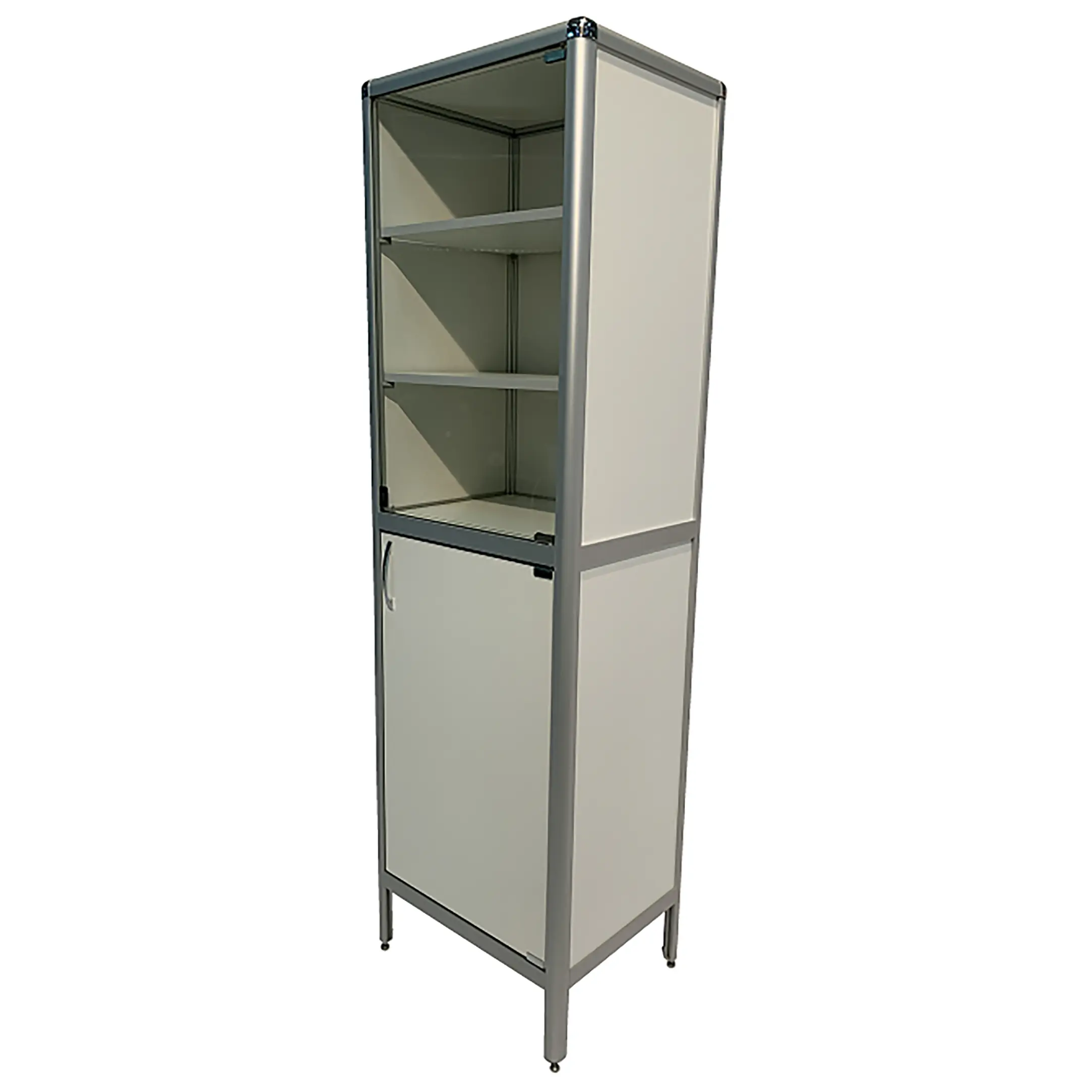 - Соответствие стандартам медицинских учреждений — шкаф разработан с учетом специфических требований к оснащению процедурных, лабораторий и аптечных пунктов. Белый цвет корпуса не только соответствует канонам медицинской эстетики, но и облегчает визуальный контроль чистоты поверхностей.