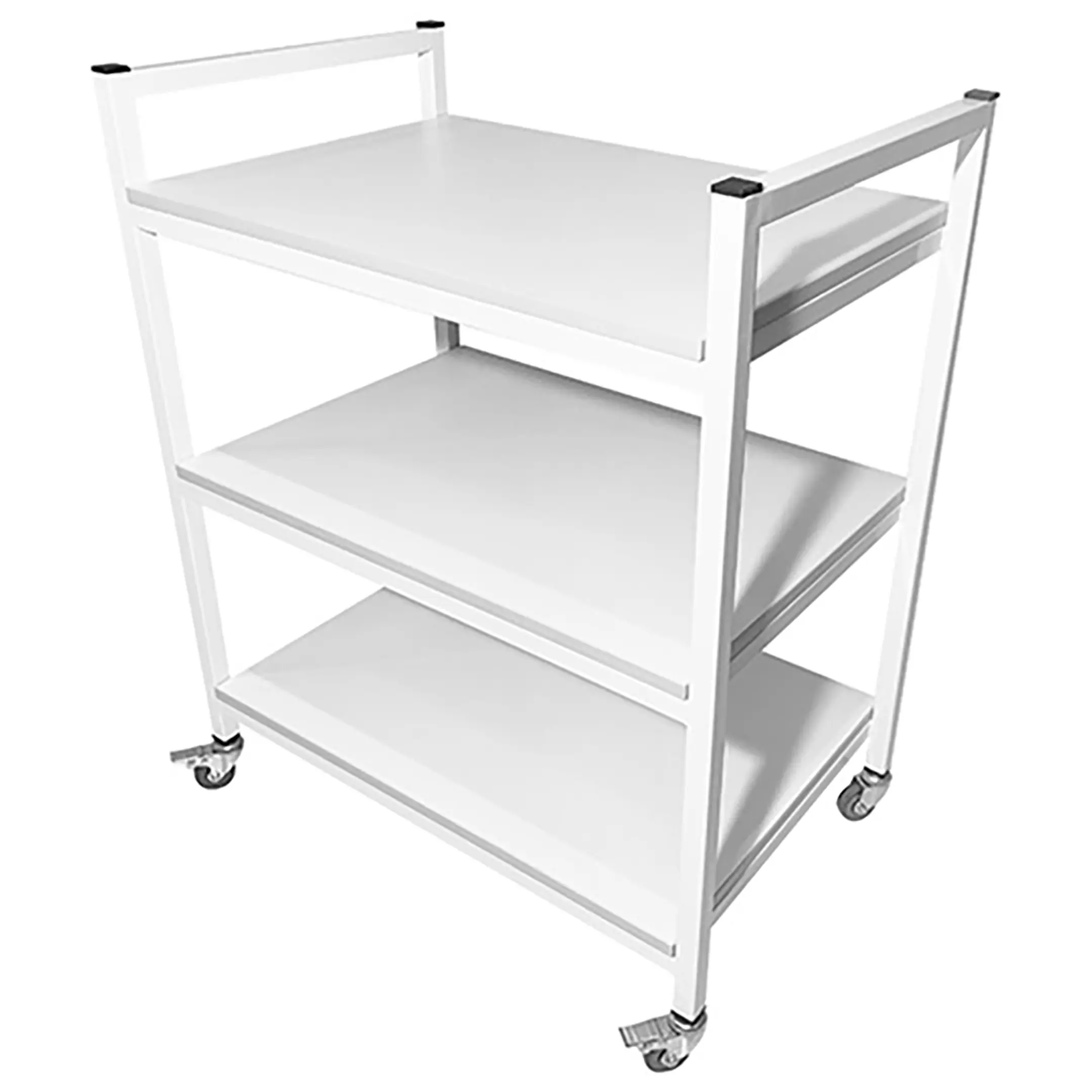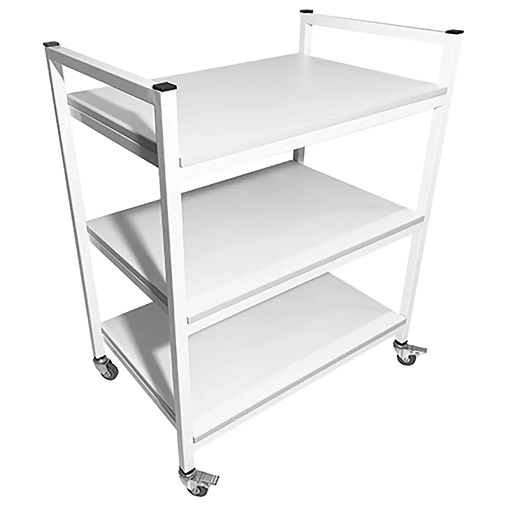Стол лабораторный мобильный СЛм 17.005 (белый) — это функциональное и практичное оборудование, идеально подходящее для использования в медицинских учреждениях и лабораториях. Модель предназначена для временного размещения и удобного перемещения различных инструментов, предметов и приборов. Оснащена тремя полками из ЛДСП и установлена на колесные опоры. Каркас выполнен из стального профиля.