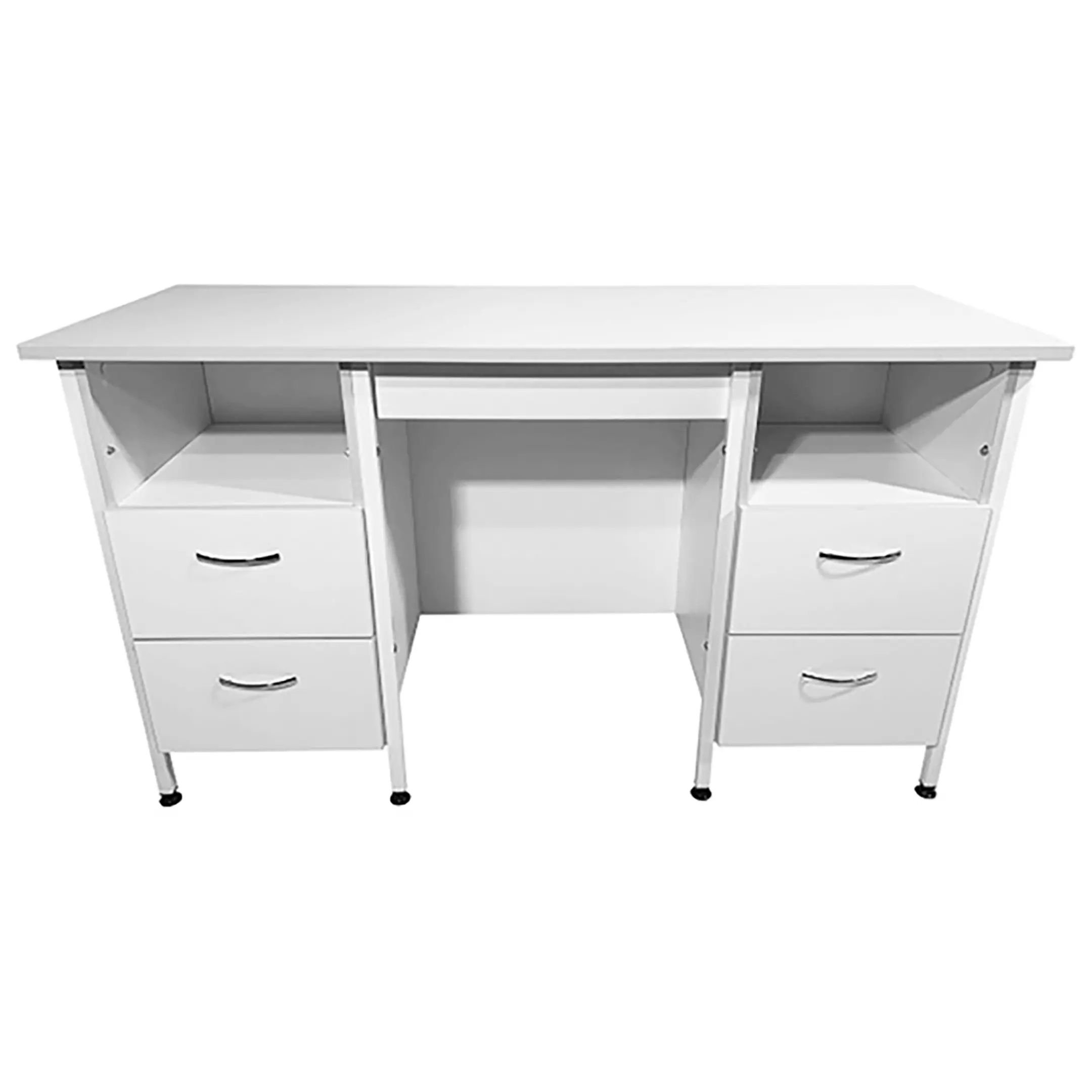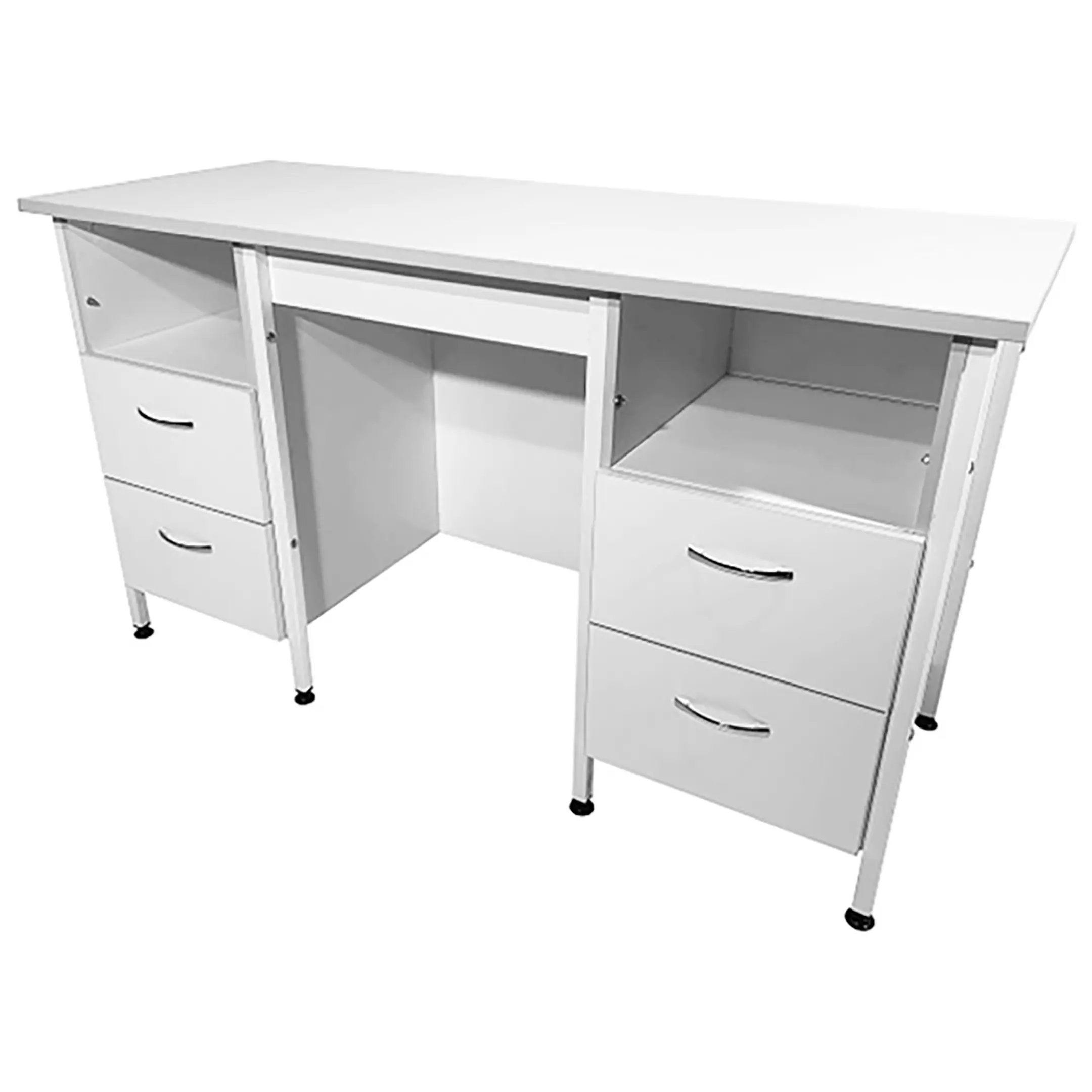 Стол лабораторный СЛ 12.018 (белый) является идеальным выбором для создания эффективного и функционального рабочего пространства сотрудников в лабораториях и медицинских учреждениях. Модель оснащена двумя тумбами с открытыми нишами сверху и выдвижными ящиками снизу. Каркас выполнен из стального профиля, столешница из ЛДСП толщиной 22 мм.