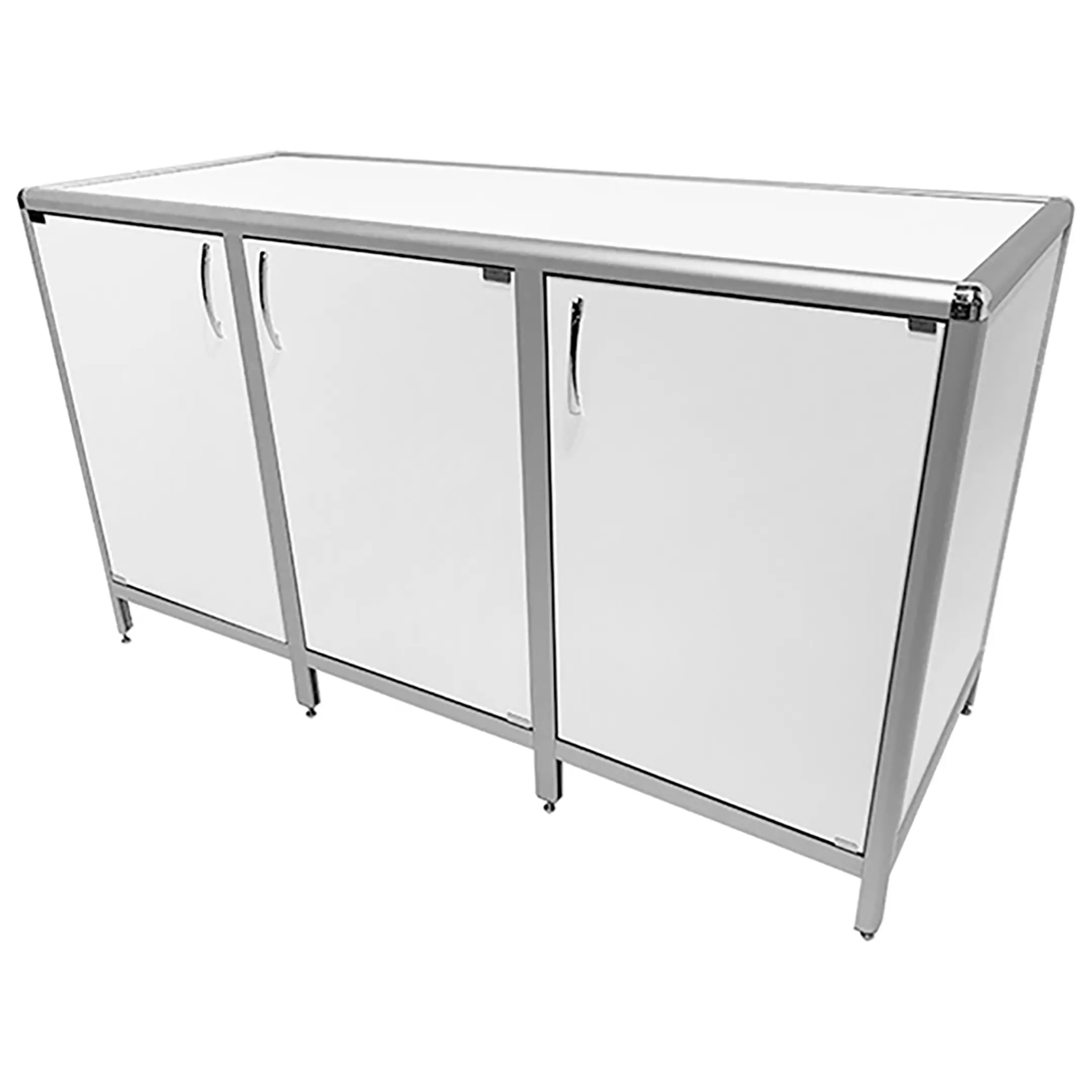 Стол-тумба лабораторная MED 12.018al (белый) — это функциональное решение для хранения лабораторного инвентаря, приборов и материалов в лабораториях и медицинских учреждениях. Модель оснащена тремя отделениями под столешницей, каждое с распашными дверками и полкой внутри (полки 467х545 мм). Каркас выполнен из алюминиевого профиля, столешница из ЛДСП толщиной 16 мм.