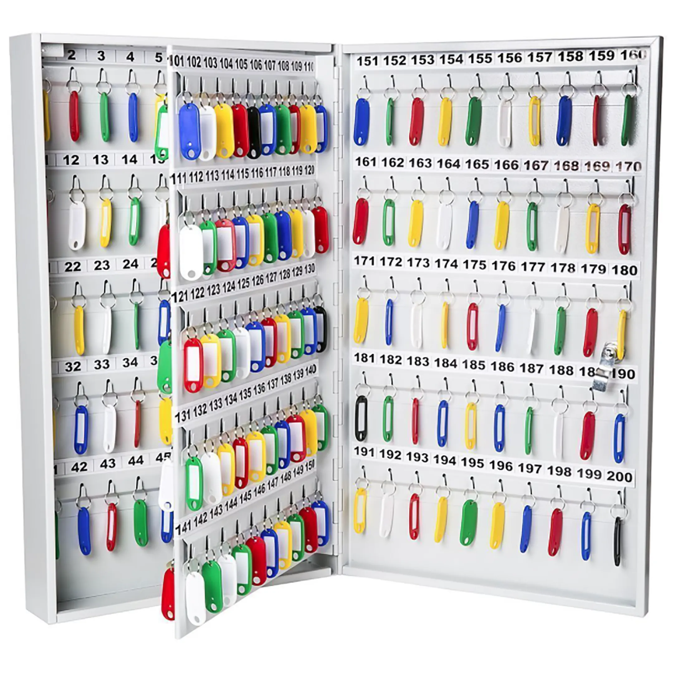- Четкая организация и экономия времени — система хранения с пронумерованными брелками и соответствующими ячейками (или крючками) исключает путаницу и длительные поиски нужного ключа. Персонал службы безопасности, администраторы или дежурные быстро находят и выдают требуемый комплект.