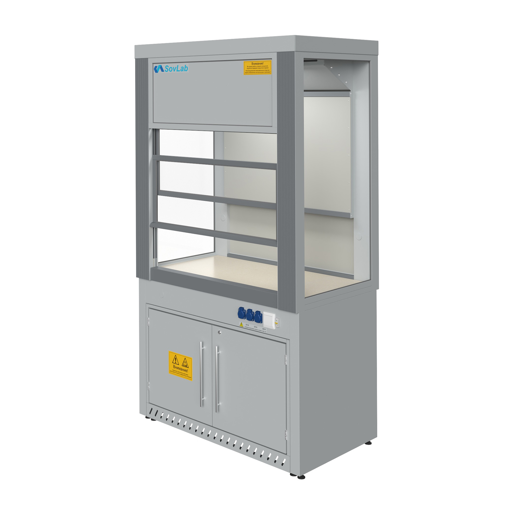 - Функциональность — шкаф подходит для установки лабораторных приборов различного типа и размера, облегчая организацию рабочего пространства.