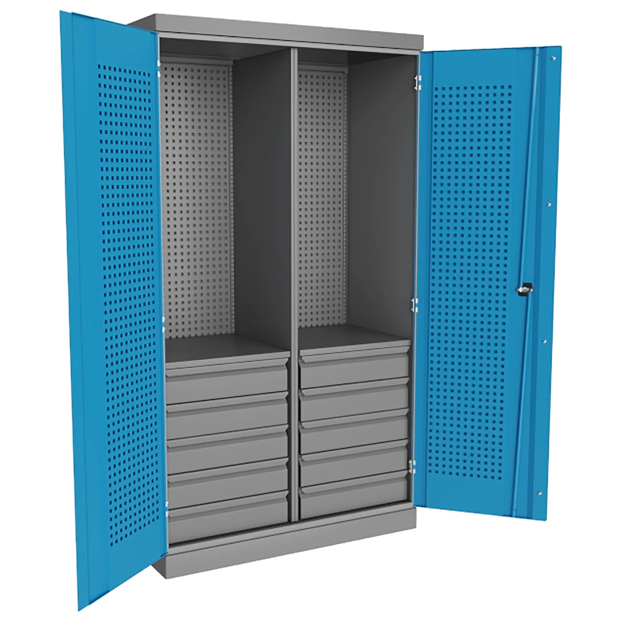 Шкаф инструментальный TNC 182.10B.2S — это профессиональное, вместительное и специализированное решение для безопасного и упорядоченного хранения режущего инструмента, держателей и прецизионной оснастки для станков с ЧПУ. Модель предназначена для использования на производственных участках, в инструментальных комнатах и учебных лабораториях, где критически важны максимальная защита дорогостоящего инструмента от повреждений и эффективная систематизация для быстрого доступа.
