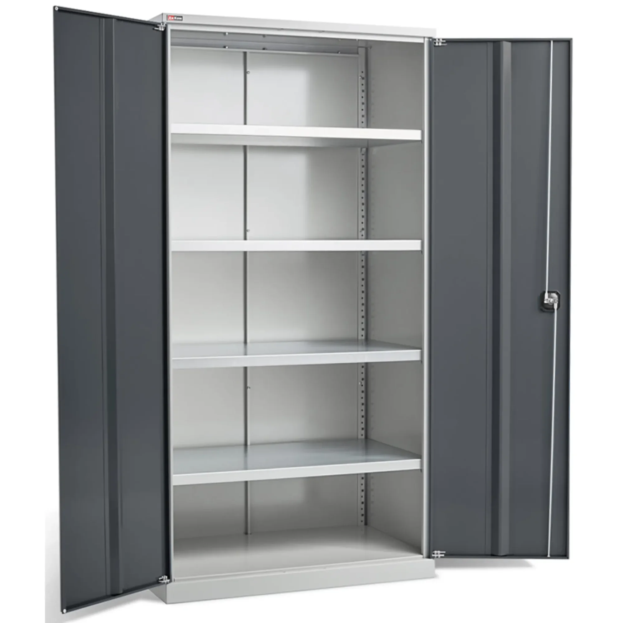 - Надежная защита содержимого — прочный стальной корпус и запирающиеся на встроенный замок двери обеспечивают защиту инструмента от несанкционированного доступа, кражи, а также от пыли и случайных повреждений. Это обеспечивает базовый уровень безопасности для ценного инвентаря.