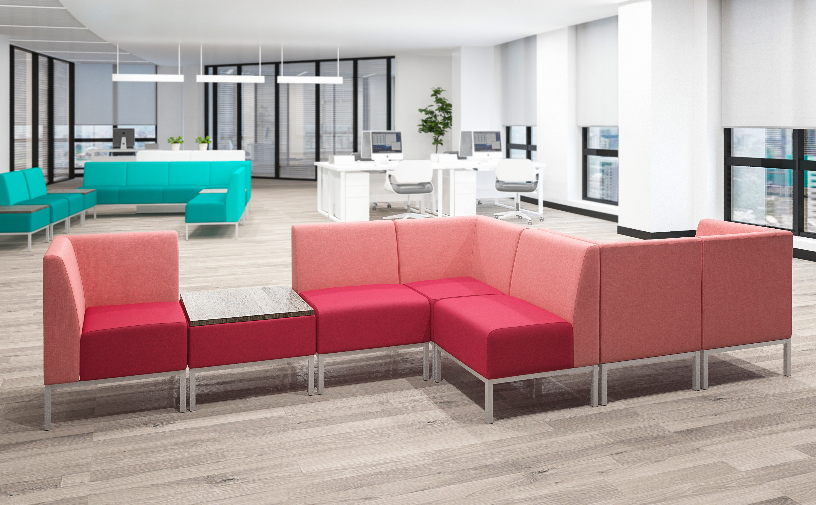 Модульные решения позволяют создать удобные мягкие зоны в любом офисном лобби или холле. Комбинируйте модули между собой, чтобы легко менять пространство.