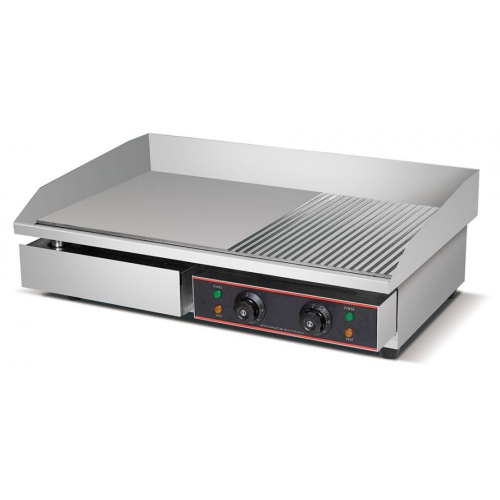 - Корпус и жарочная поверхность из нержавеющей стали — устойчивы к коррозии, легко очищаются и соответствуют санитарным нормам общепита.