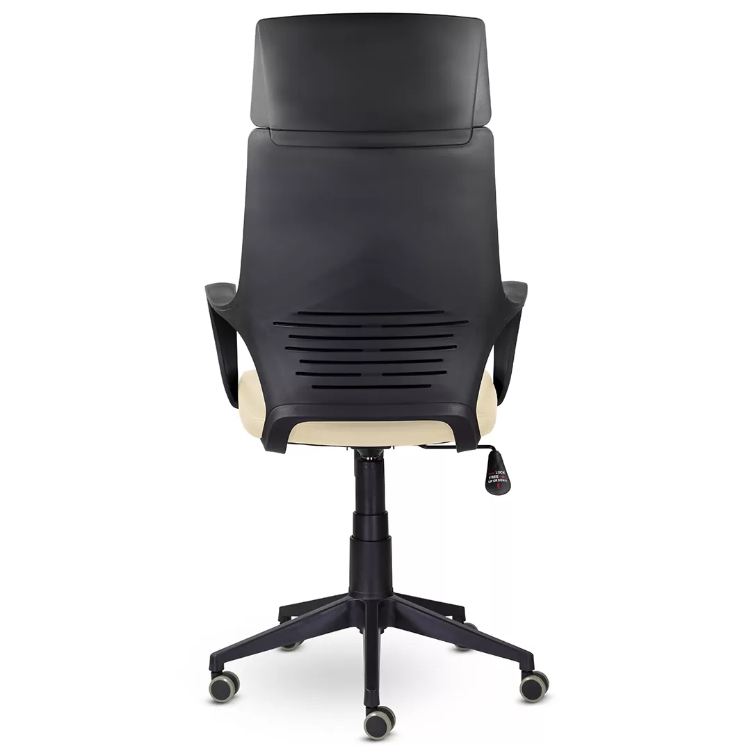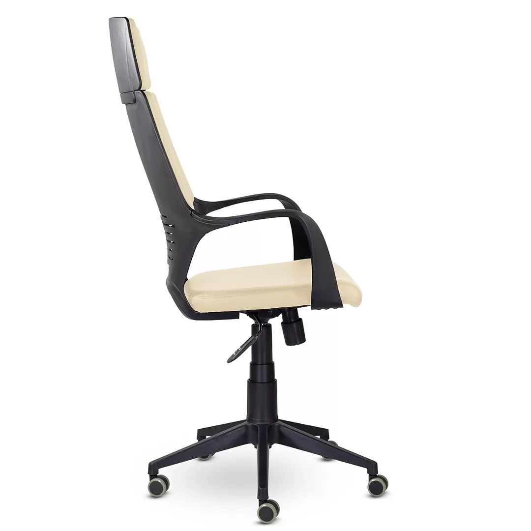 - Пластиковая крестовина и ролики — устойчивая основа и лёгкое перемещение по офисным покрытиям.