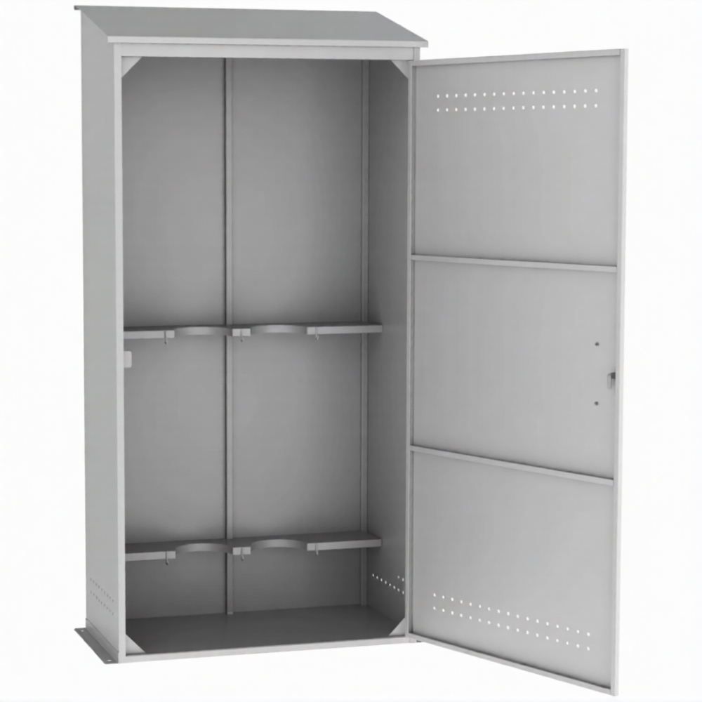 - Оптимальное соотношение цены, качества и функциональности — данная модель представляет собой идеальный баланс для бизнеса: она предлагает усиленную надежность по доступной цене, полностью решая задачу безопасного хранения двух баллонов без лишних затрат.