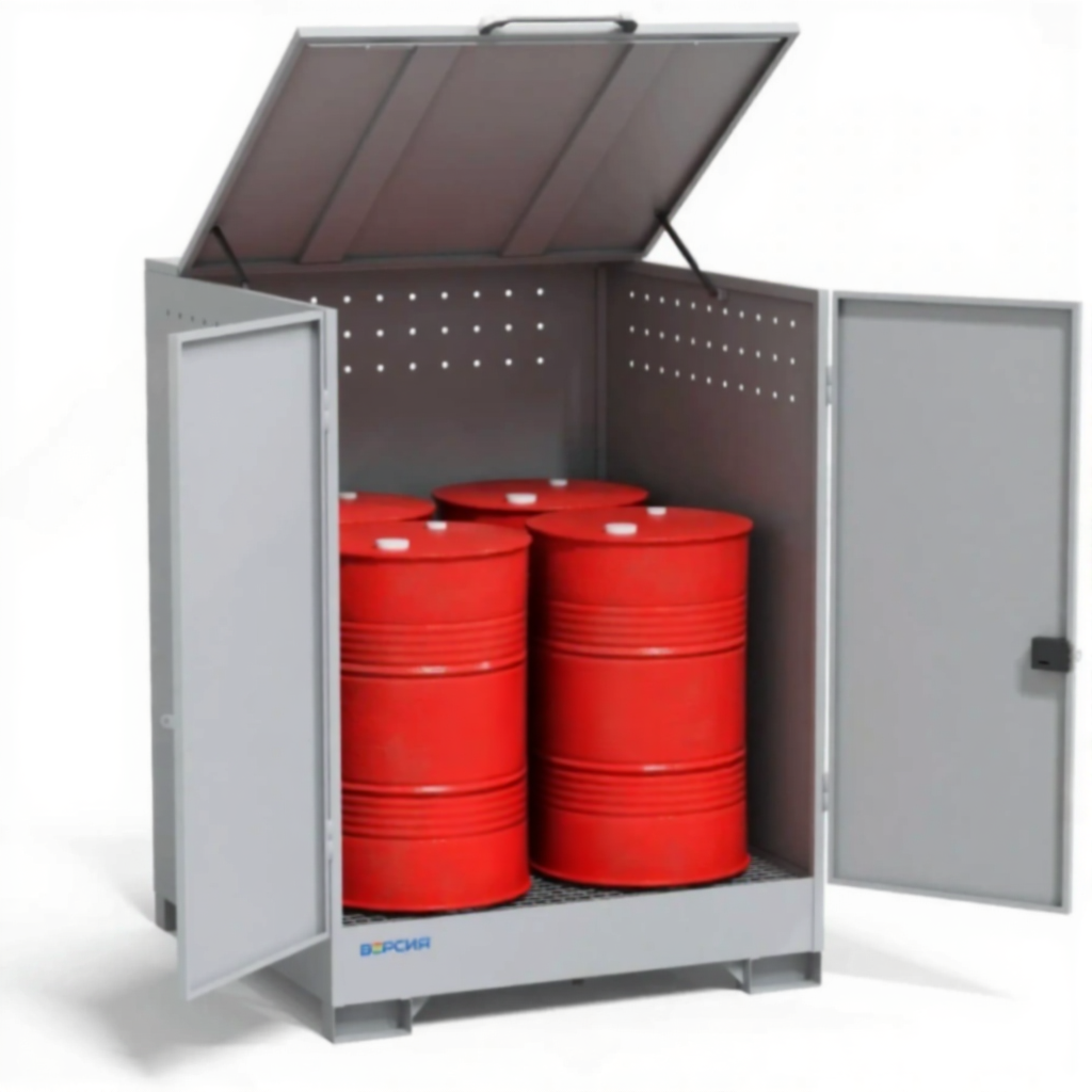 Шкаф для 4-х бочек 1900х1410х1405, оцинкованный настил, сточный поддон — это компактное и эффективное решение для безопасного хранения бочек с жидкостями на небольших производственных участках, в мастерских, на складах и в сельском хозяйстве. Модель с габаритами 1900х1410х1405 мм представляет собой металлический шкаф, рассчитанный на размещение 4 стандартных бочек, и оснащенный ключевыми элементами безопасности: оцинкованным настилом и сточным поддоном для сбора возможных протечек.