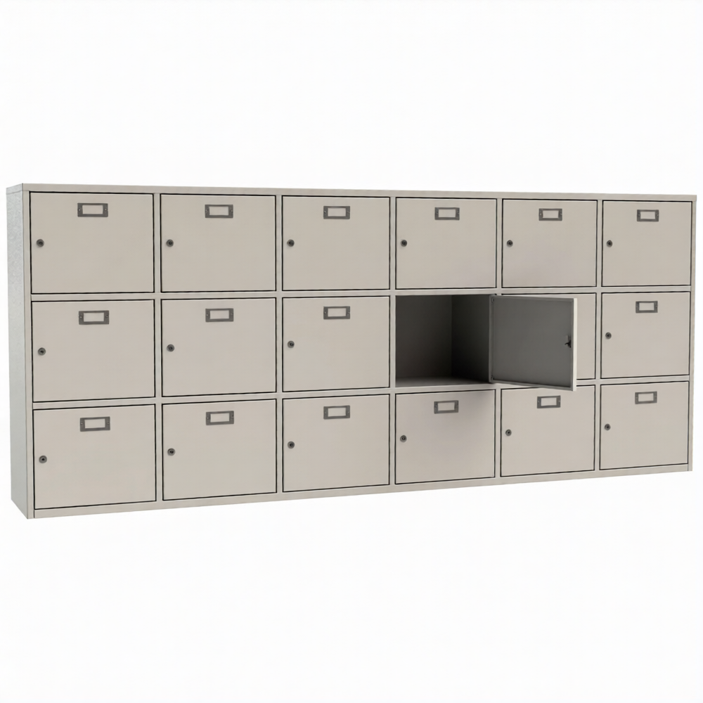 • 18 ячеек для касок. Каждая ячейка оснащена почтовым замком с двумя ключами в комплекте.