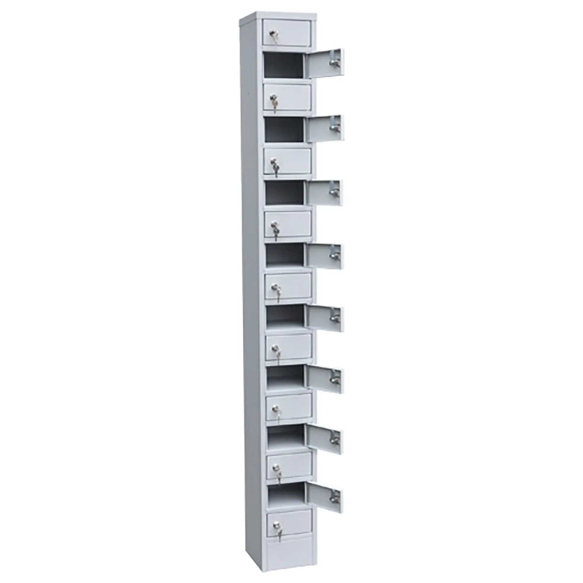 - Надежная защита в компактном формате — несмотря на малый размер, каждая ячейка оборудована собственным замком, а общая конструкция выполнена из прочного металла. Это гарантирует безопасное хранение устройств от кражи и несанкционированного доступа, отвечая требованиям учреждений и предприятий.
