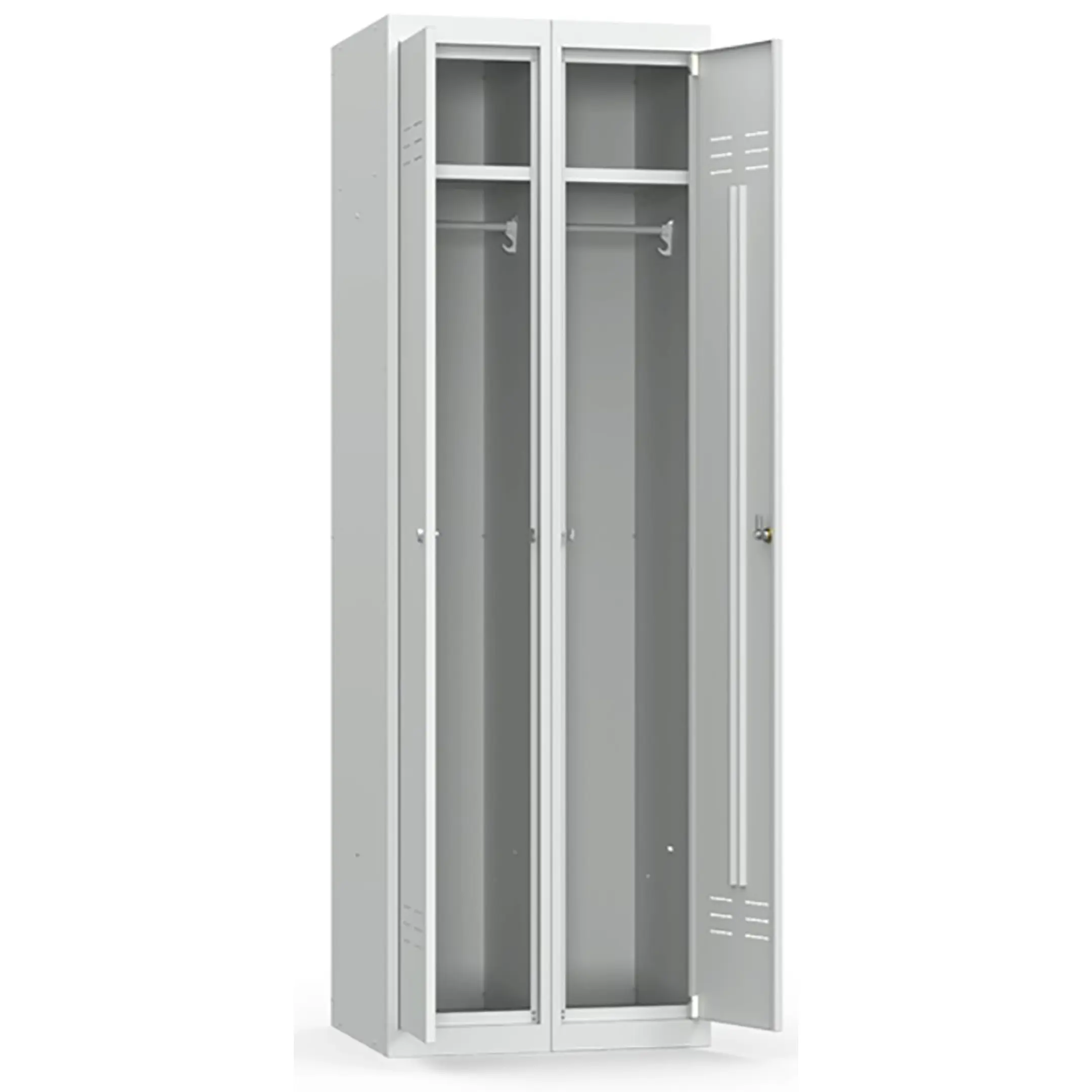 • 2 секции, 2 полки, 2 перекладины для плечиков, 4 крючка, 2 замка повышенной секретности;