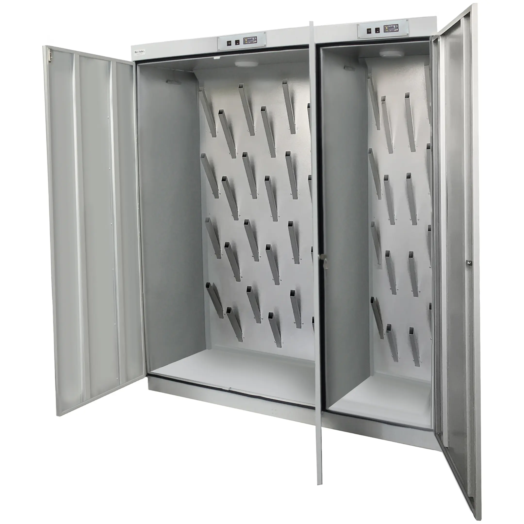 - Высокая производительность и вместимость — шкаф рассчитан на одновременную сушку значительного количества пар обуви, что идеально подходит для организаций с большим штатом сотрудников или учащихся. Его производительность позволяет эффективно обрабатывать объемные загрузки за один цикл.
