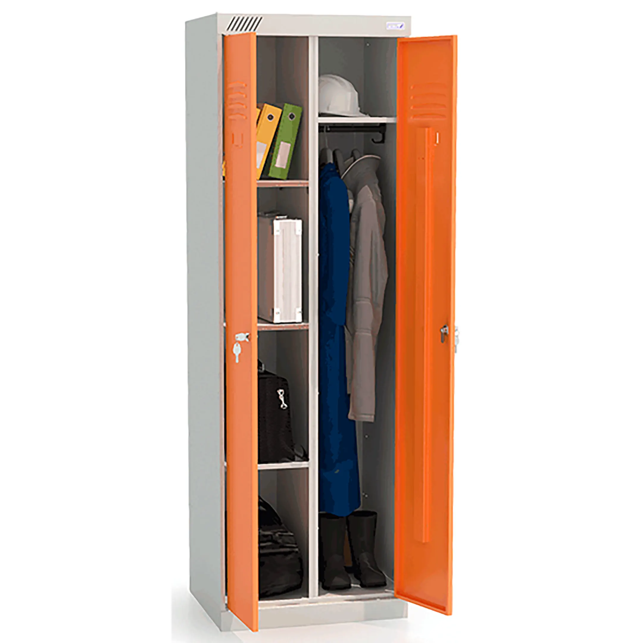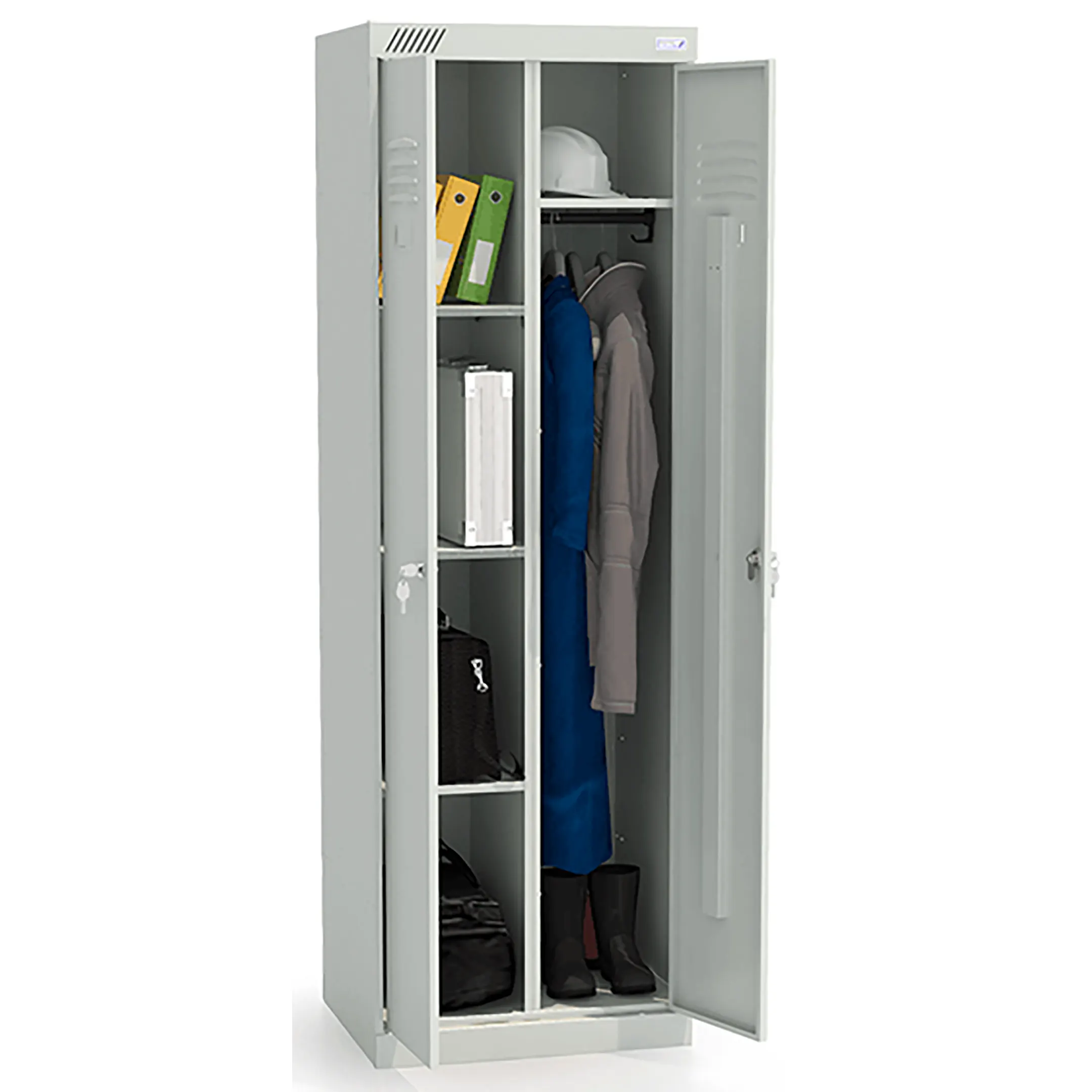 - Многофункциональность и универсальность применения — шкаф может использоваться для хранения самого разнообразного содержимого: от уборочного инвентаря и моющих средств до рабочей одежды, инструментов, учебных материалов и спортивного оборудования, адаптируясь под конкретные задачи организации.