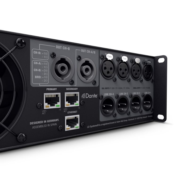 • 4-канальный усилитель мощности с Dante и DSP